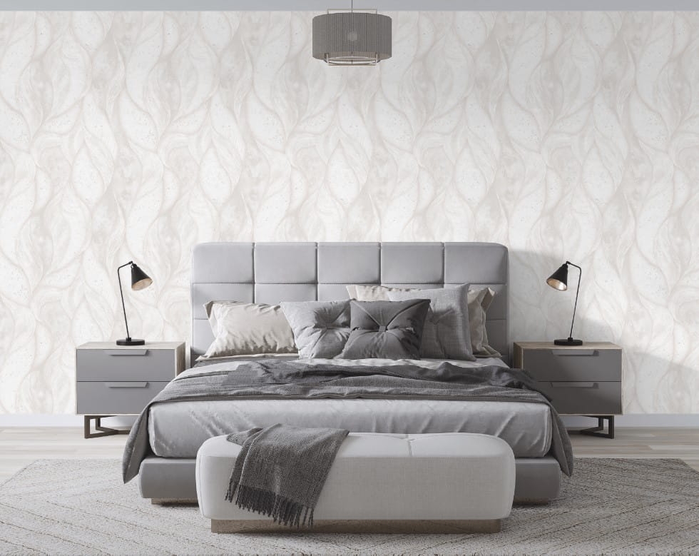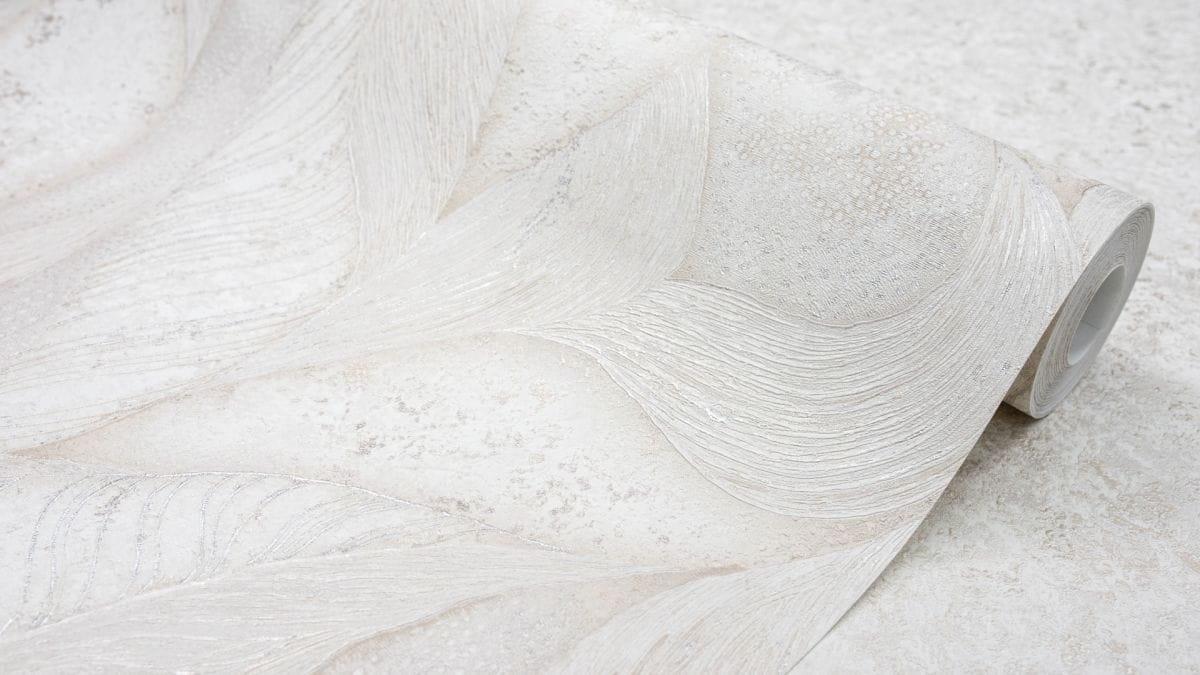 Tapeta z motywem roślinnym oraz ozdobnego tynku. Doskonale sprawdzi się jako motyw dekoracyjny na fragmencie ściany lub jako wykończenie całego pomieszczenia.