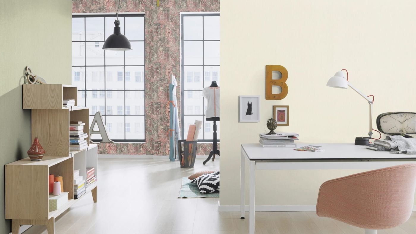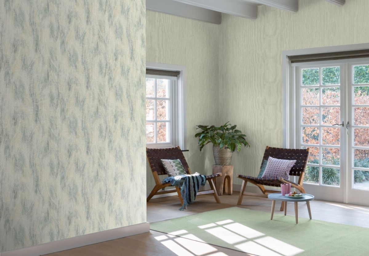 Struktura: Powierzchnia delikatnie chropowata w dotyku, imitująca worek. Tapeta posiada matowe wykończenie.