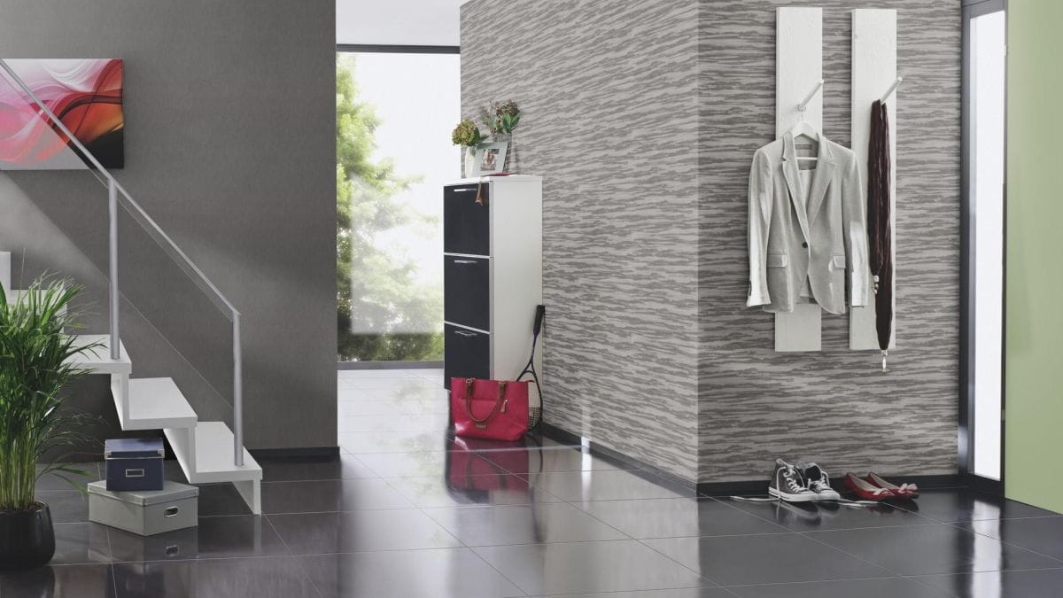 Tapeta ścienna na flizelinie 608694 Rasch Incanto delikatna struktura pionowych prążków w kolorze antracytu