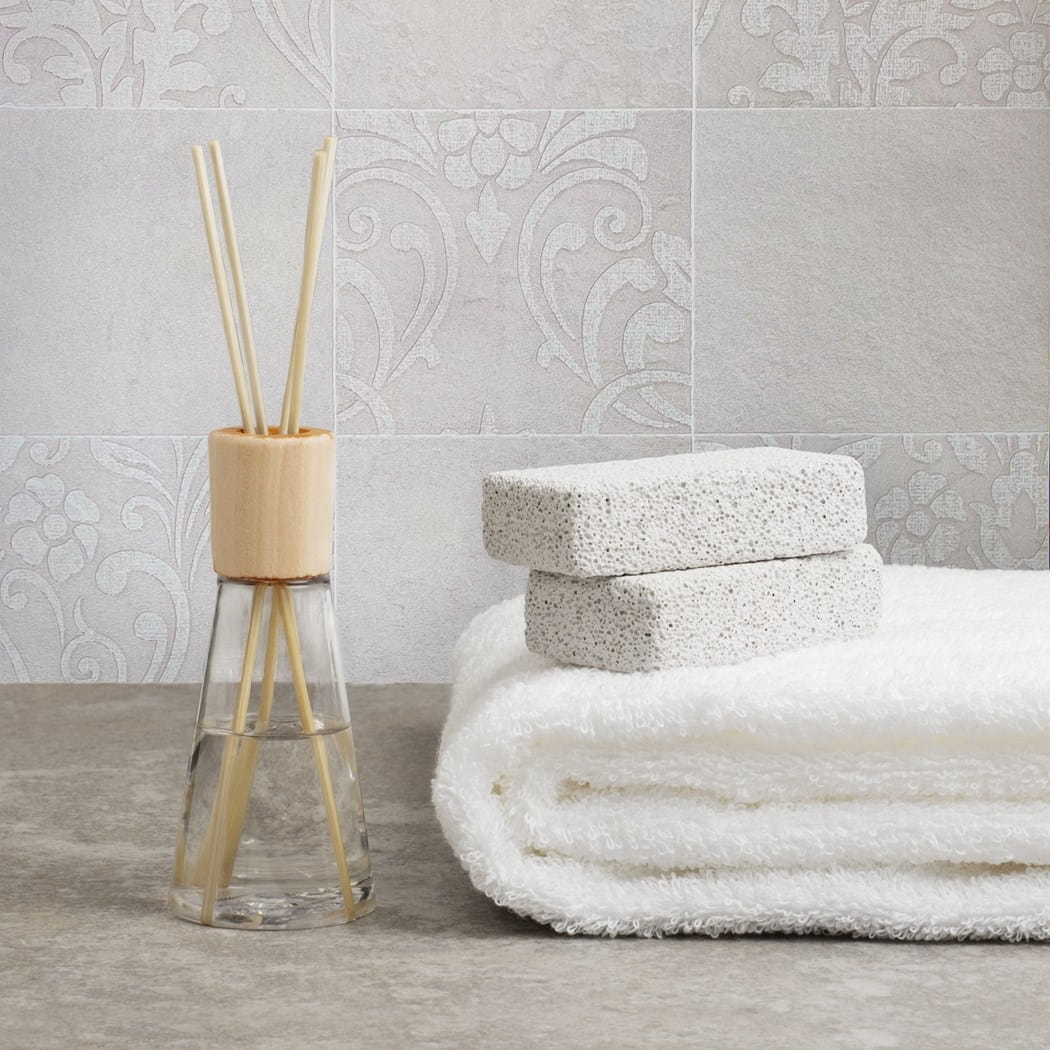 Tapeta z motywem kafli/kafelek. Doskonale sprawdzi się jako motyw dekoracyjny na fragmencie ściany lub jako wykończenie całego pomieszczenia.