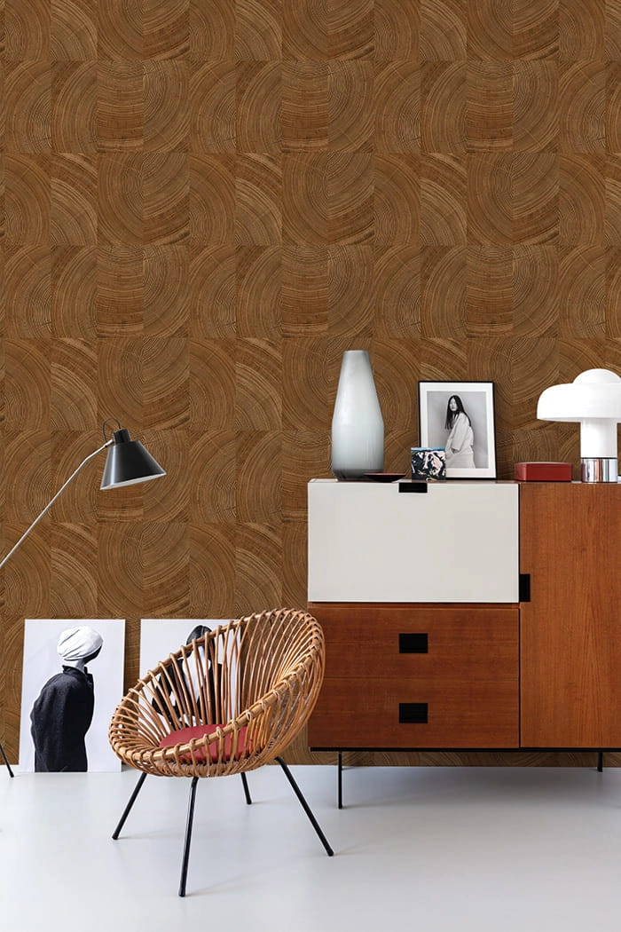 Grandeco Winylowa tapeta ścienna na flizelinie Karuna A69101 słoje drzewa, przekrój drzewa