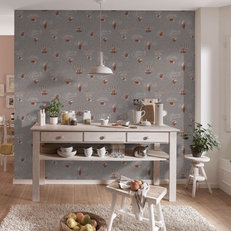 Tapeta ścienna na flizelinie szara kuchenna kawa coffee caffe 10410-47