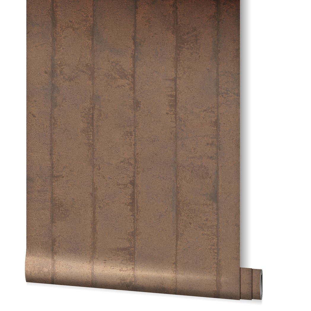 Tapeta w kolorze miedzianym w pionowe pasy o strukturze tynku w połysku