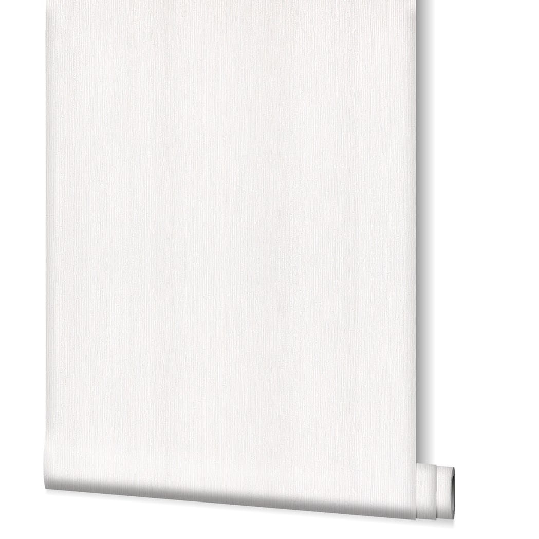 Tapeta w kolorze złamanej bieli, tynk drapany, przerywany drobny prążek.