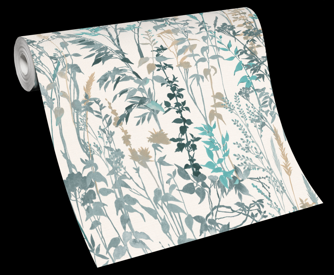 Tapeta ścienna trawy liście turkusowa beżowa 10258-18