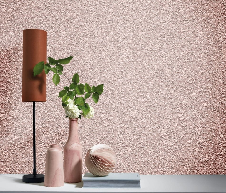 Powierzchnia chropowata w dotyku, tłoczenia wzoru są nieregularne i wyczuwalne w dotyku, tworzą na powierzchni tapety grubo nakrapianą powłokę.