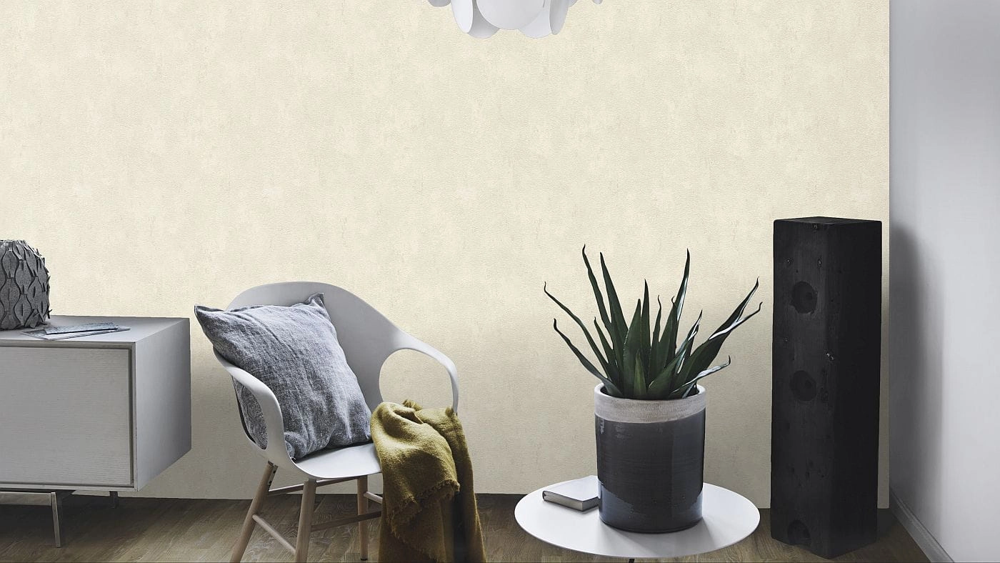 Tapeta ścienna na flizelinie, imitująca ozdobny tynk, z drobnymi, lekko połyskującymi przetarciami.