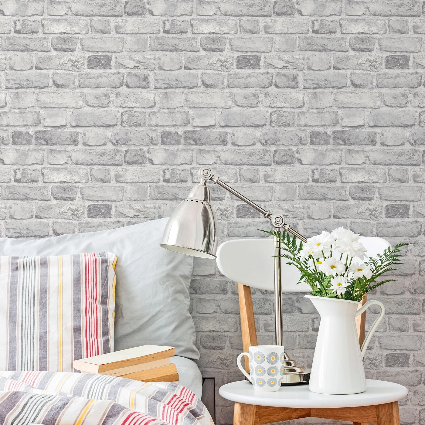 - Struktura tapety: tapeta delikatnie szorstka w dotyku, fugi, łączenia cegieł lekko wklęsłe