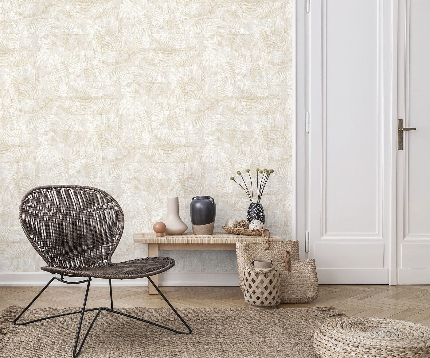 Tapeta ścienna na flizelinie, przedstawiająca ciekawy motyw geometryczny, przecierana, strukturalna.