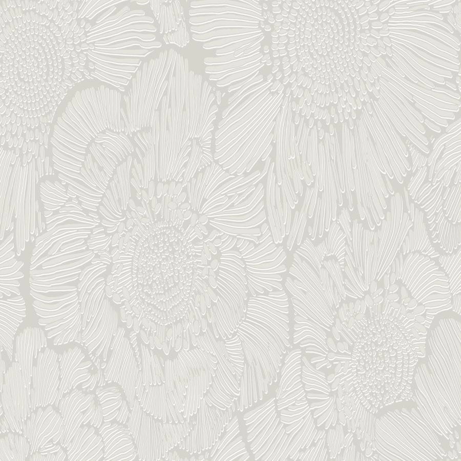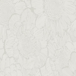 Tapeta ścienna na flizelinie, z motywem roślinnym, przedstawiającym duże, gęste kwiaty w odcieniu jasnej szarości i brzegach, konturach lekko połyskujących.