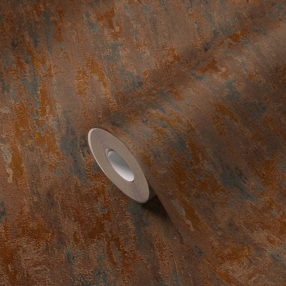 Tapeta o charakterze ozdobnego tynku, w odcieniach miedzianego brązu