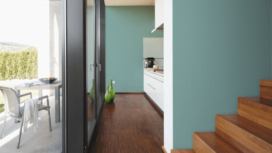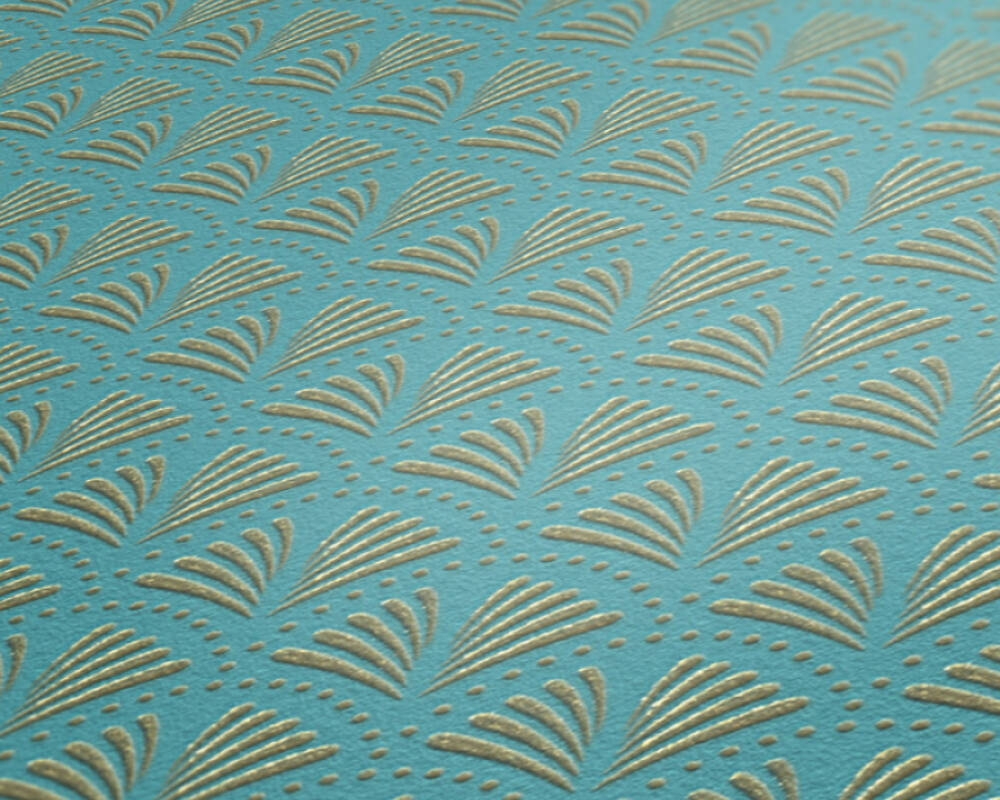 Wzór ten z kolekcji AS Creation "Trendwall 2" to ciekawy, pełen delikatnej elegancji i wyrafinowania motyw, który doskonale sprawdzi się w tradycyjnych stylizacjach. Tapeta w odcieniu jasnego turkusu pokryte jest gęsto niewielkim, oprószonym złotym brokatem wzorem, przypominającym rozłożone wachlarzyki. Połączenie połyskującego brokatu i tła w delikatnym, turkusowym kolorze jest dobrym pomysłem na pełne elegancji i ciepła wykończenie wnętrza, w którym z pewnością będziemy się dobrze czuć. Tapetę można wykorzystać do wykończenia jednej, wybranej ściany lub całego pomieszczenia, połączyć z pasującymi tapetami o jednobarwnej powierzchni, jak również może ona stanowić dodatek do pomalowanych ścian. Dekoracja o takim charakterze sprawi, że wnętrze zyska nowy, niepowtarzalny styl.