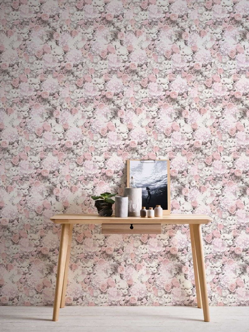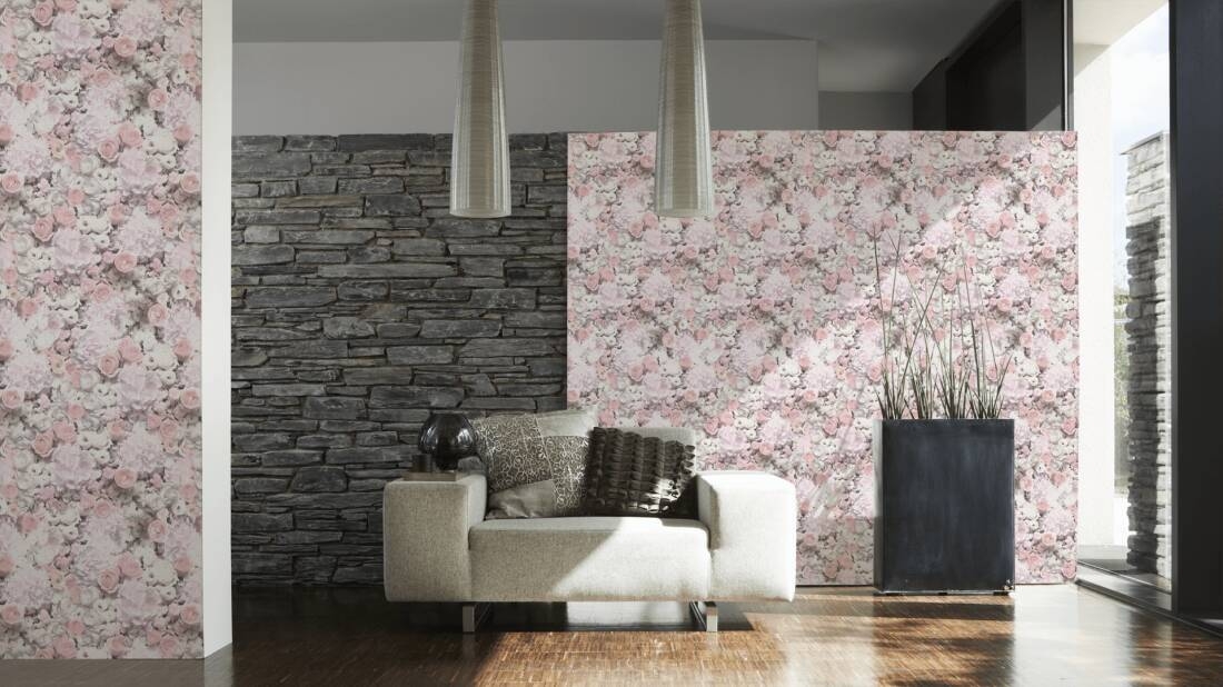 Wzór ten z kolekcji AS Creation "Trendwall 2" to niezwykła i bogata odsłona kwiatowego wzoru. Powierzchnię tapety gęsto i szczelnie wypełniają różnego rodzaju kwiaty, przeważają róże i piwonie. Wzór tworzy swego rodzaju kwiatowy dywan, który z pewnością nada niepowtarzalnego charakteru naszym wnętrzom i stworzy miejsce pełne ciepła i uroku. Całość występuję w różnych, jasnych odcieniach zgaszonego różu i bieli. Wzór ten będzie doskonałym pomysłem na wykończenie wnętrz takich jak salon, sypialnia, czy przedpokój. Wzór można wykorzystać jako wykończenie jednej ściany, lub wybranego jej fragmentu, dobrze będzie się również komponować z jednobarwnymi tapetami, lub jako uzupełnienie do pomalowanych ścian. Sprawdzi się w stylizacjach tradycyjnych, jak również w bardziej nowoczesnych. Dekoracja o takim charakterze sprawi, że wnętrze zyska nowy, niepowtarzalny styl i charakter.
