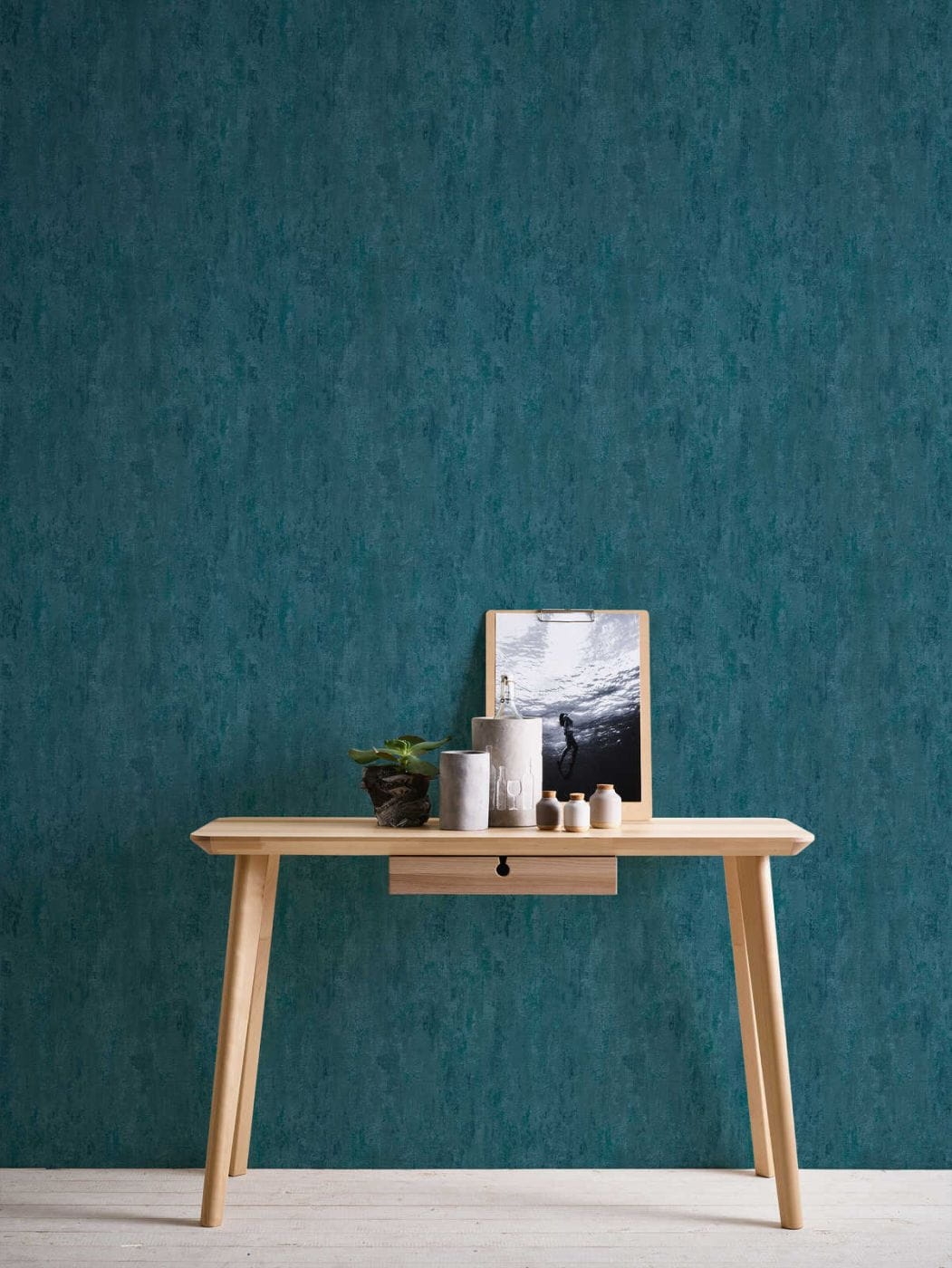 Ten wzór znajdzie uznanie wśród osób, które lubią surowe i naturalne wykończenie wnętrz o stonowanej kolorystyce. Powierzchnia tapety o wyraźnym nieregularnym tłoczeniu i różnej gradacji zagęszczenia wzoru. Motyw w odcieniach ciemnego niebieskiego, z widocznymi nieregularnymi przecierkami, mniejszymi i większymi gładkimi płaszczyznami połyskującymi perłową poświatą. Forma tłoczenia/ przecierania wzoru i operowanie kolorem daje bardzo ciekawy efekt, sprawiając że wzór doskonale imituje ozdobny tynk. Tapetę można wykorzystać do wykończenia jednej, wybranej ściany lub całego pomieszczenia, połączyć z pasującymi tapetami o podobnym charakterze, jak również może ona stanowić dodatek do pomalowanych ścian. Dekoracja o takim charakterze sprawi, że wnętrze zyska nowy, niepowtarzalny styl.