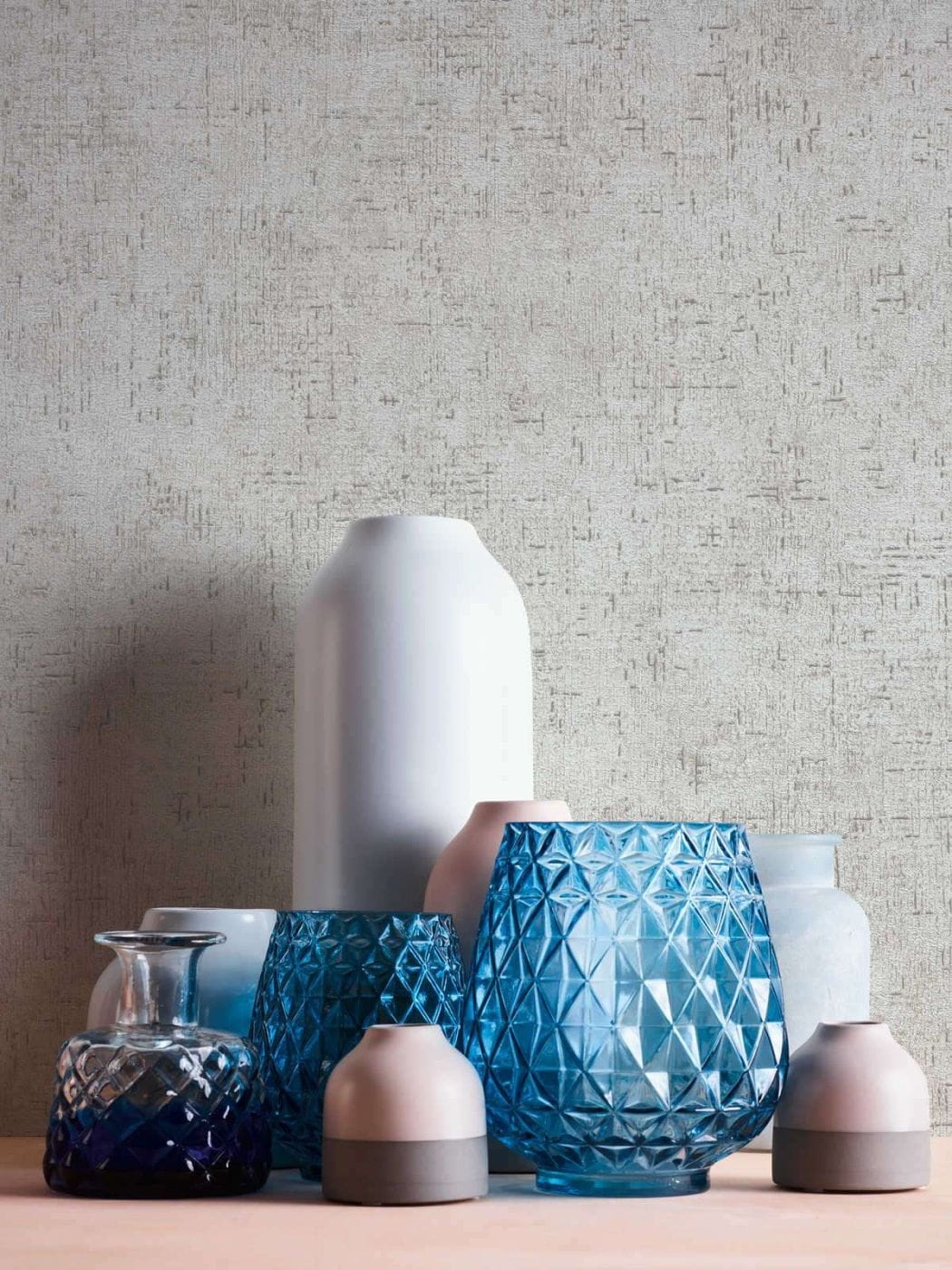 Ten wzór znajdzie uznanie wśród osób, które lubią surowe i naturalne wykończenie wnętrz o stonowanej kolorystyce. Aranżacja jest w naturalnych odcieniach jasnego beżu, z drobnymi, lekko połyskującymi jasnym złotem elementami. Powierzchnia jest o kolorze wyraźnie przecieranym, niejednolitym, tworzy powłokę przypominającą tynk/beton. Połączenie surowego betonu i eleganckich-złotych dodatków dodaje aranżacji niepowtarzalnego wyglądu. Tapetę można wykorzystać do wykończenia jednej, wybranej ściany lub całego pomieszczenia, połączyć z pasującymi tapetami o podobnym charakterze, jak również może ona stanowić dodatek do pomalowanych ścian. Dekoracja o takim charakterze sprawi, że wnętrze zyska nowy, niepowtarzalny styl.