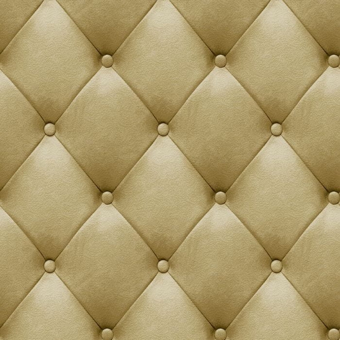 Tapeta realistycznie oddaje obraz tapicerowanej ściany. Pufki 3D dodatkowo są ozdobione wzorem delikatnych drobnych listków.